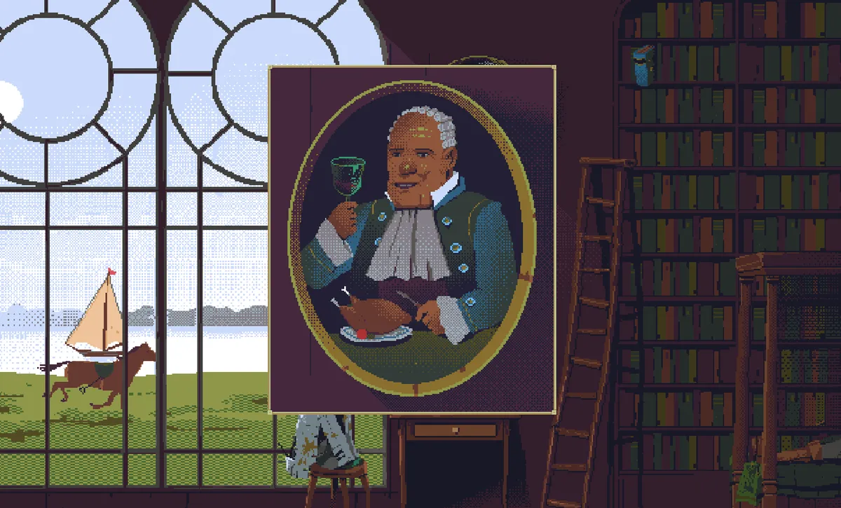 The art evolves in rendering style from the first game but maintains its grotesque caricaturistic style; honestly it's a little too rendered for me vs. the first game's pixel art. With Case's art, there was more room for one's brain to fill in details and had a little bit of amateur charm to it as well, which Rise loses (not a problem unique to just the art, though). Weirdly, the UI/UX in the first game was also better in some ways, but the 'hide solving windows' toggle in this one is quite smart.